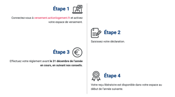 Le versement de votre contribution à Action Logement se déroule en 4 étapes :